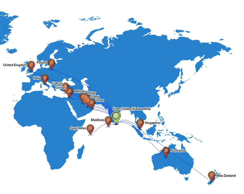Our company commenced exports in late 1990s with the growing demand for its products in international markets and currently our products are exported to Australia, New Zealand , Italy, Maldives, Singapore, United Kingdom, Qatar, Dubai, Bahrain, Jordan, Oman, Cyprus, Seychelles and Poland.